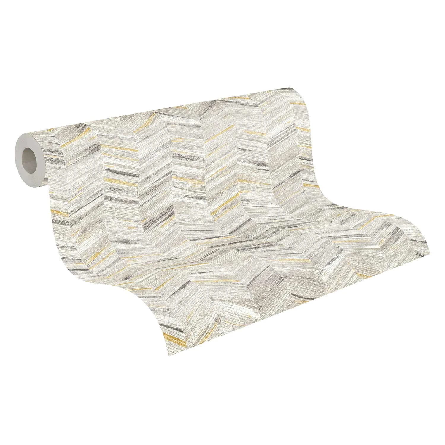 Vliestapete aus der Kollektion Geo-Effect von AS Creation in Weiss Grau Glitzer mit Zickzack