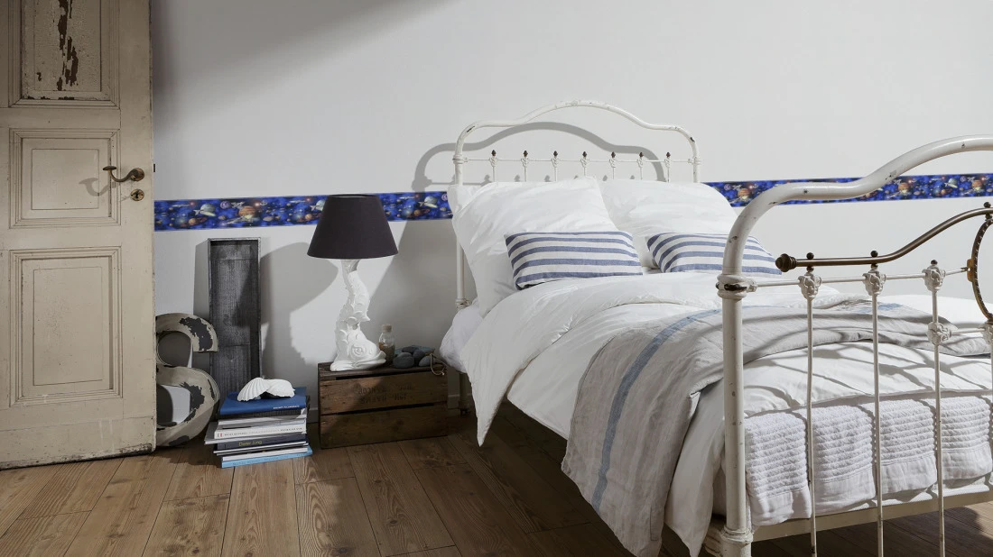 AS Creation vereint in der Bortenkollektion Only Borders 9 die schönsten Borten in einer einzigen Sammlung, die für Jeden das passende Design bereithält. Dabei erschafft die Borte 8962-16 mit ihrer Weltall- und Raumschiff-Abbildung in bunt eine einzigartige Raumwirkung. Darüber hinaus lässt sich diese Borte auch noch mit unzähligen, anderen Designs kombinieren, so dass Sie jeden Raum ganz nach persönlichem Belieben gestalten können. Zusätzlich is die Tapetenborte wasch- bzw. lichtbeständig sowie selbstklebend, wodurch kein zusätzlicher Kleister benötigt wird.