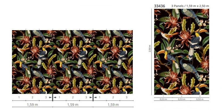 Der Stardesigner Harald Glööckler verbreitet Dschungel-Flair mit seiner neuen Tapeten-Kollektion Glööckler Jungle Collection, die durch seinen bevorstehenden TV-Auftritt im Dschungelcamp entstanden ist. Inspiriert vom australischen Dschungel sind in Kooperation mit der Marburger Tapetenfabrik exotische Designs entstanden. Großformatige Blatt-Motive, florale Ranken und bunte Vögel im typischen Glööckler Stil sind kennzeichnend für diese Kollektion der Extraklasse. Die Fototapete 33436 mit farbintensiven, großformatigen exotischen Blumen und Blättern, bringt mit seinem natürlichen Design einen Hauch Exotik zu dir nach Hause und wertet deine Wohnräume optisch auf. Lass dich von Harald Glööcklers floraler Tapete begeistern.