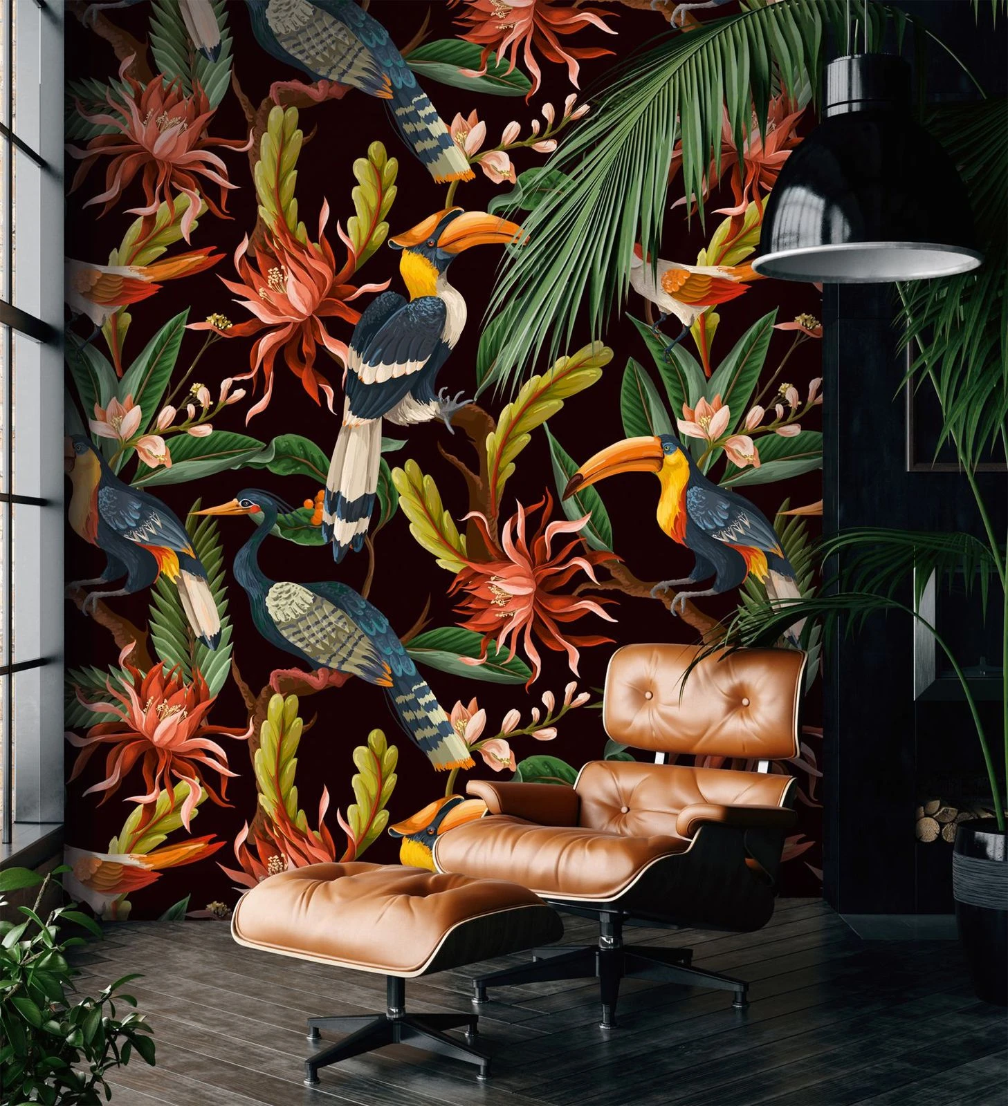 - Stilwelten: Fototapete Dschungel-Pflanzen und Vögel