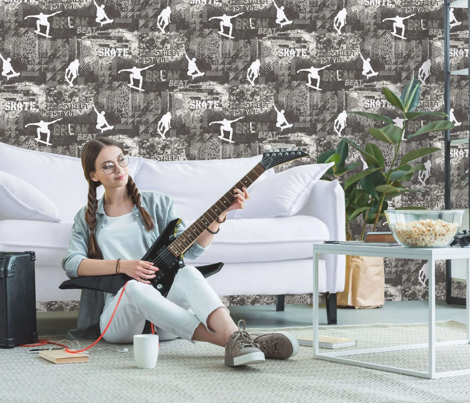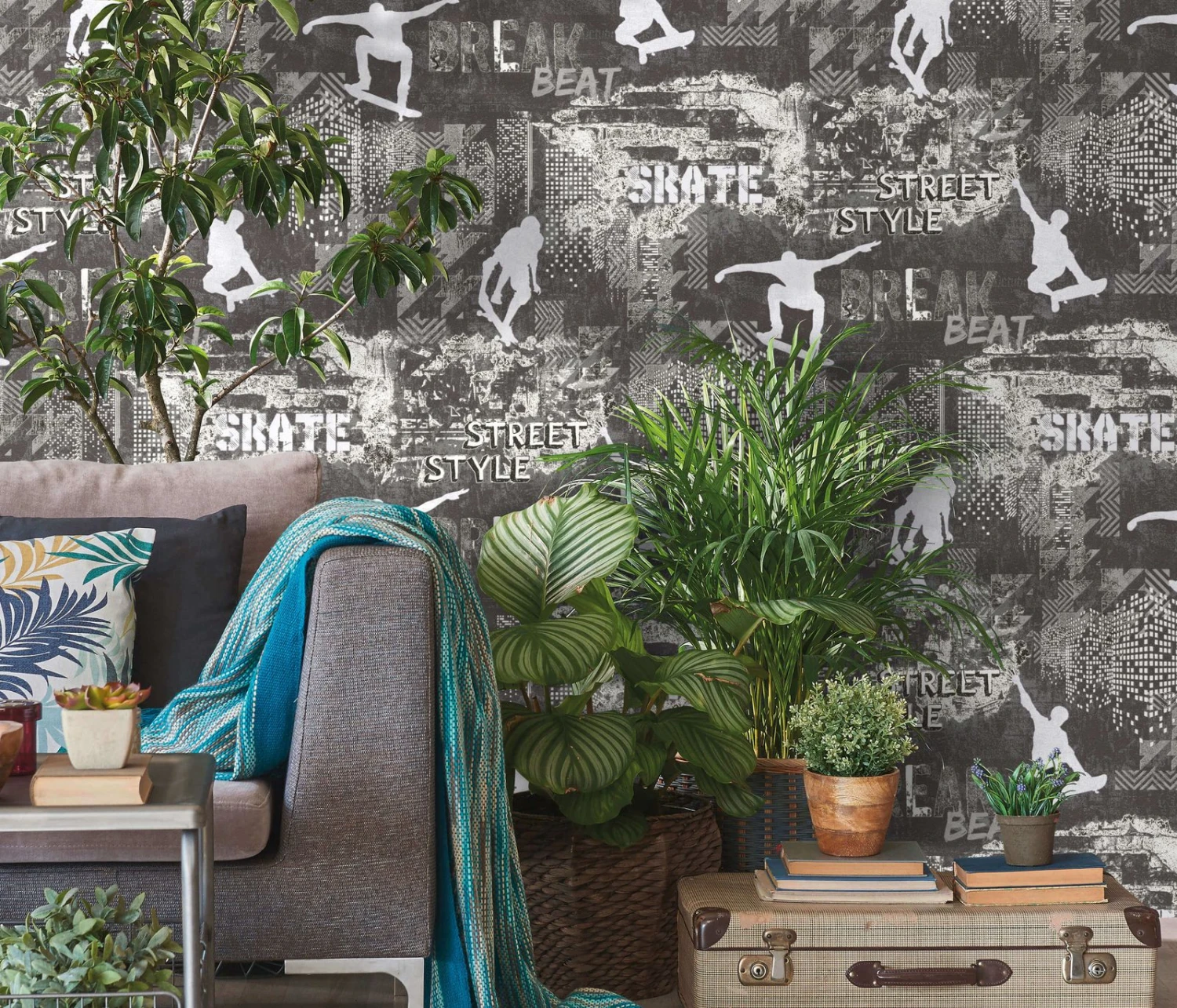 Kindertapete Sweet And Cool Skater Grau 10141-34