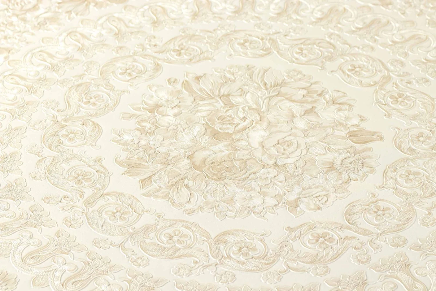 Den glänzenden Vinyl-Vliestapeten der 4. Auflage der Versace Home Kollektion überzeugen auf den ersten Blick mit herausragender Qualität. Auch die Vinyltapete 370551 mit ihren luxuriösen großen Kacheln mit floralen Ornamenten in creme und beige mit Metallic-Effekt überzeugt mit Exklusivität in jedem Detail! Bequem und günstig können Sie jetzt mit wenigen Klicks Ihr Zuhause mit diesem Prunkstück schmücken – also gleich zugreifen!