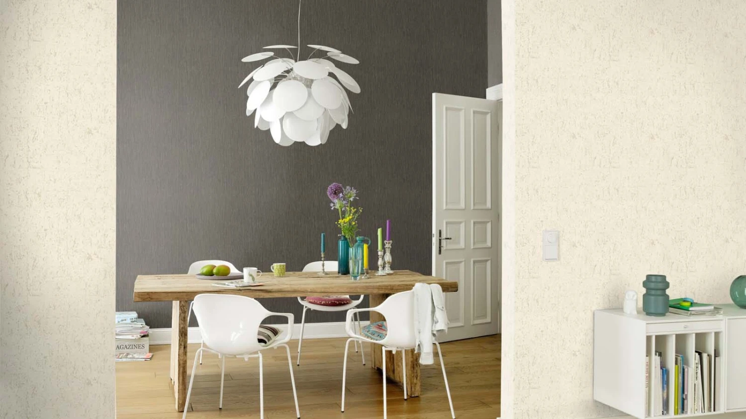- Eigenschaften: hoch waschbeständig, gut Lichtbeständig, einfach zu tapezieren dank Wandklebetechnik, restlos trocken abziehbar, schwer entflammbar